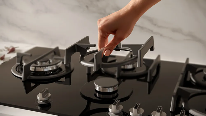 Don't worry about wobbly cookware.We've designed our cast iron pan supports to provide maximum stability so you can cook with confidence. Two pan supports together form a continuous surface, but can be removed individually. Thanks to their smaller shape, they are easier to handle and fit better in the dishwasher. Because that is the best part: they´re suitable for dishwashers. Just pure cooking joy.