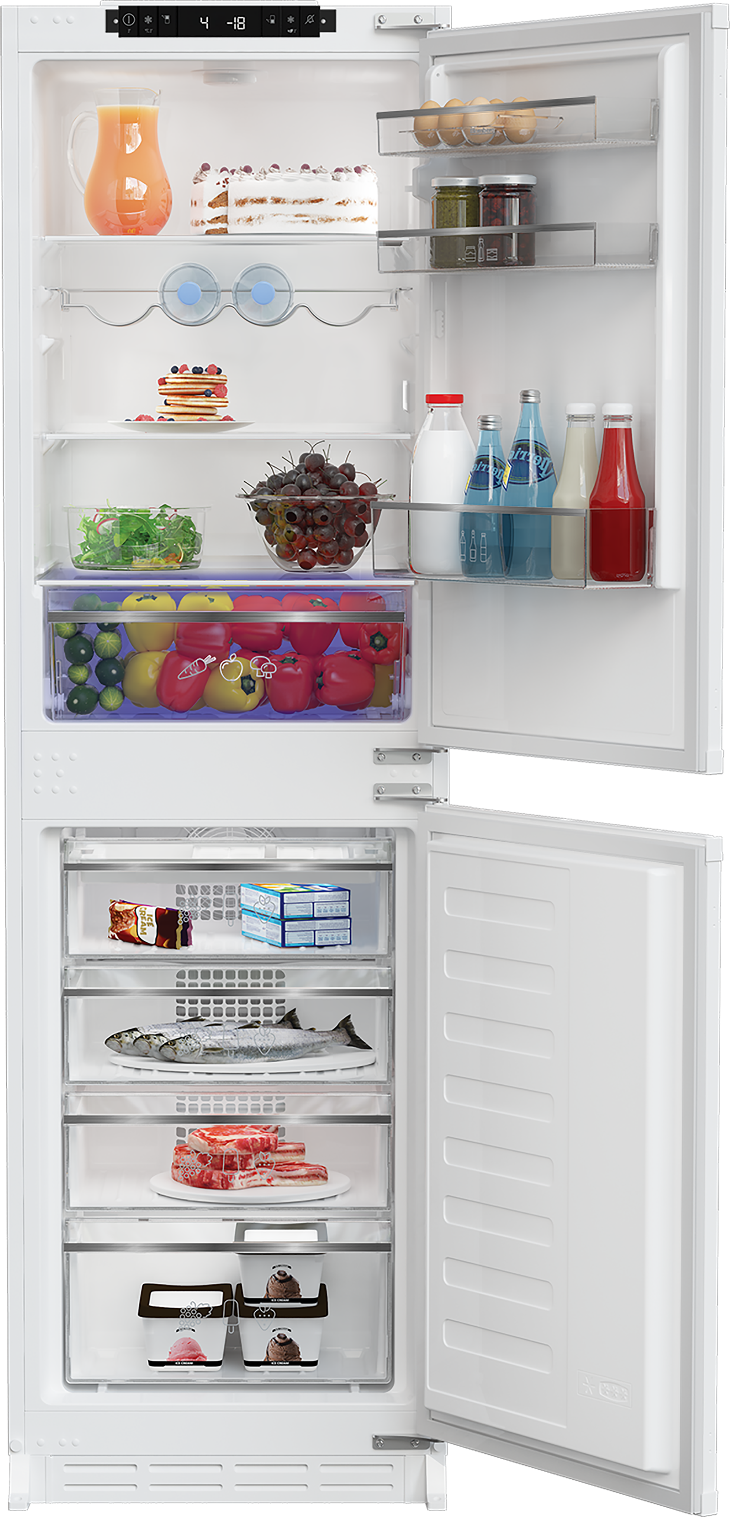 Using coloured LED lights, Blomberg’s VitaminCare+ Technology harnesses the power of nature inside your fridge freezer. By simulating the sun’s natural 24-hour light cycle, VitaminCare+ preserves the nutrients and vitamins in your fruit and vegetables, reducing food waste and keeping your food fresher for longer.