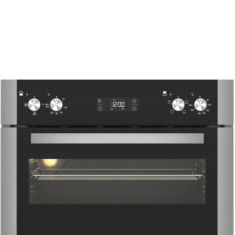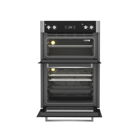 Inside the main oven, you’ll find FanPlus technology – where you can enjoy evenly cooked items in less time than with a conventional model. Featuring five shelves and 71 litres of usable space, there’s plenty of room for multiple dishes at once. This cavity even features a defrost function, so you can save time if you’re cooking frozen food. In the top oven, there are two shelves, 38 net litres, a variable grill, and a choice of four different functions: Conventional Cooking, Full Width Grill, Half Grill, and Bottom Heating.